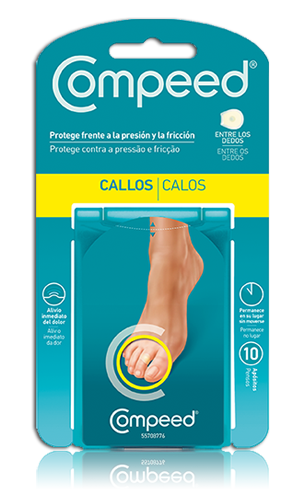 Limpiar y secar bien la piel, asegurando que la zona esté limpia de cremas y aceites. Para una mayor adhesión calentar con las manos el apósito durante 1 minuto. Retirar el papel superior evitando tocar el adhesivo. Aplicar Compeed® directamente sobre el callo, asegurando que los bordes no formen pliegues.